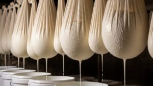 The traditional method is beautifully simple. Fresh milk—often from sheep or goats, which gives it a richer flavor than cow’s milk—is heated, cooled, and then inoculated with live cultures. Once the milk has set into a basic yogurt, the magic of straining begins. The yogurt is poured into large, porous cloth bags, traditionally made of muslin or cheesecloth, and hung up. Gravity does the rest, slowly pulling the whey out.