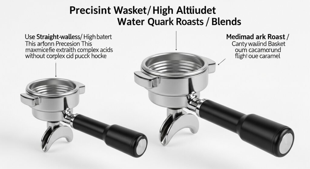 Light Roasts / High Altitude: Use a straight-walled, ridgeless precision basket. This maximizes the flow and ensures you can grind fine enough to extract the complex acids without causing the puck to choke.
