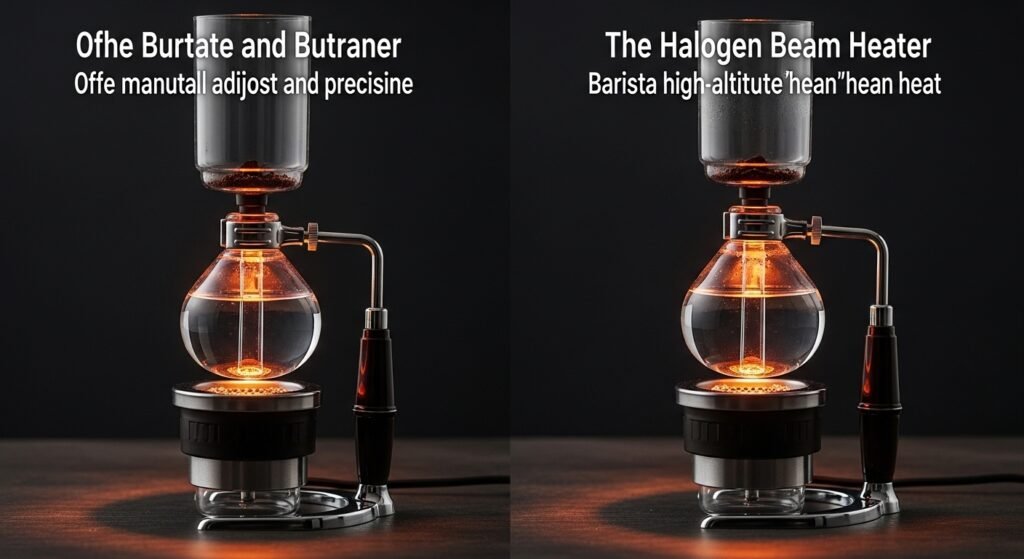 2. The Halogen Beam Heater: The ultimate “theater” tool. It uses high-intensity light to heat the water. It provides the most stable and controllable heat, allowing the barista to maintain a perfect “rolling boil” without overheating the glass.