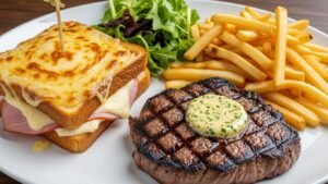 One of the most ubiquitous and satisfying is the **Croque Monsieur**. Forget the sad, pale versions you might find elsewhere. The authentic Parisian Croque Monsieur is a masterpiece of simplicity: two slices of brioche-like bread, filled with high-quality ham and Gruyère cheese, slathered with a creamy Béchamel sauce, and baked until the cheese is bubbling and golden brown. It is often served with a side of crisp, lightly dressed greens to cut through the richness. It is the perfect lunch, a testament to the French ability to elevate even the simplest ingredients.